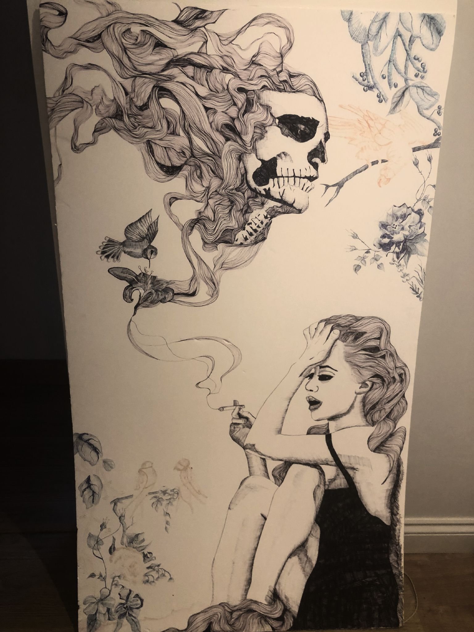 A-level art, circa 2012. Even then, I wasn’t interested in drawing fruit; I wanted to draw a story.